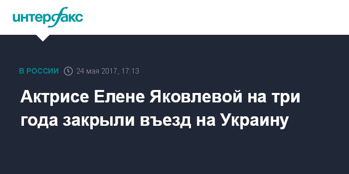 Москва. 24 мая. INTERFAX.RU - Российский актрисе Елене Яковлевой было отказано во въезде на Украину, сообщила пресс-служба Восточного регионального управления государственной пограничной службы.
