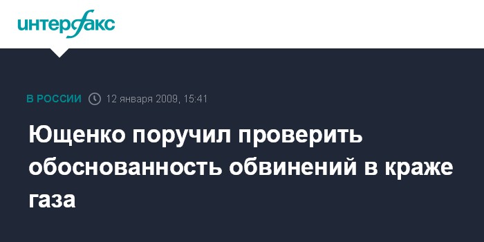 Москва. 12 января. INTERFAX.RU - Президент Украины Виктор Ющенко поручил Генеральной прокуратуре проверить обоснованность заявлений о несанкционированном отборе газа из газотранспортной системы Украины, сообщила пресс-секретарь президента Ирина Ванникова на брифинге в понедельник в Киеве.