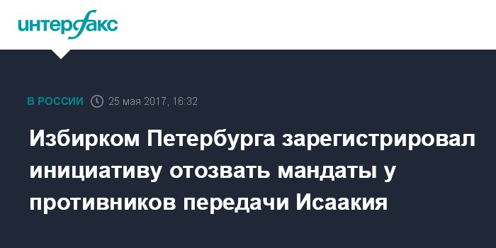Избирком Петербурга зарегистрировал инициативу отозвать мандаты у противников передачи Исаакия