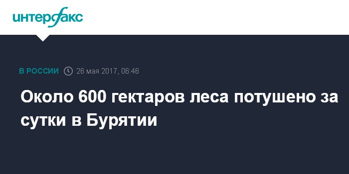 Москва. 26 мая. INTERFAX.RU - Крупный лесной пожар на площади 600 га потушен за минувшие сутки в Кижингинском районе Бурятии, сообщили агентству "Интерфакс" в республиканском агентстве лесного хозяйства.