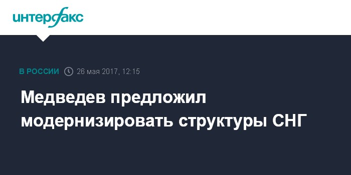Москва. 26 мая. INTERFAX.RU - Современные условия ставят вопрос о модернизации структур Содружества независимых государств, заявил премьер-министр РФ Дмитрий Медведев.