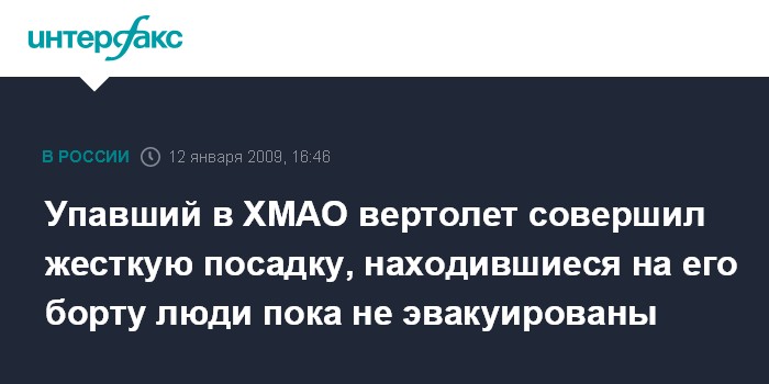 Упавший в ХМАО вертолет совершил жесткую посадку, находившиеся на его борту люди пока не эвакуированы
