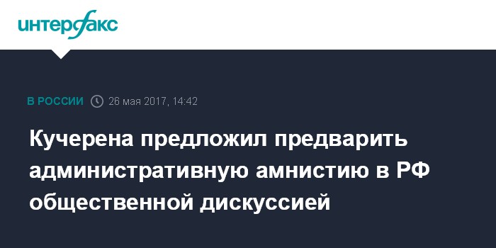 Москва. 26 мая. INTERFAX.RU - Объявление амнистии по административным правонарушениям должно предваряться широкими общественными слушаниями по этой теме с выработкой консолидированной позиции, считает член Общественной палаты России адвокат Анатолий Кучерена.