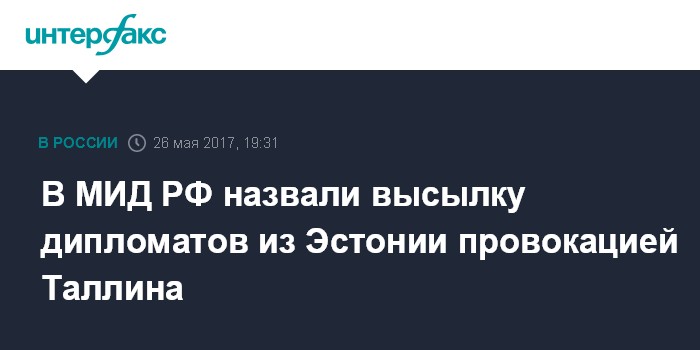 Москва. 26 мая. INTERFAX.RU - В Москве расценивают высылку из Эстонии двух российских дипломатов как провокационный и необоснованный шаг Таллина.