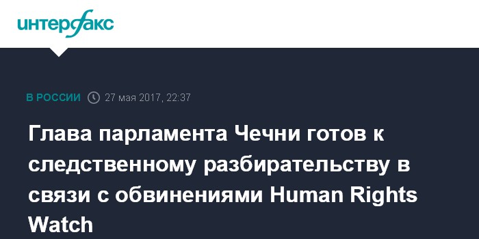 Глава парламента Чечни готов к следственному разбирательству в связи с обвинениями Human Rights Watch