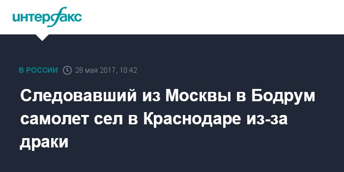 Следовавший из Москвы в Бодрум самолет сел в Краснодаре из-за драки