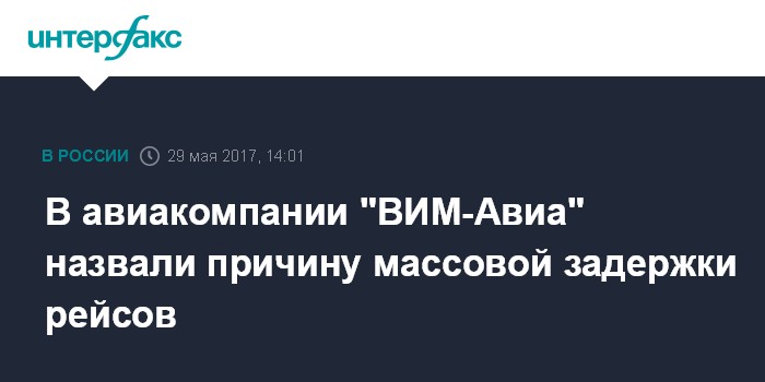 Москва. 29 мая. INTERFAX.RU - Задержки рейсов авиакомпании "ВИМ-Авиа" вызваны поздним возвратом с планового технического обслуживания трех широкофюзеляжных воздушных судов. Об этом сообщили "Интерфаксу" в пресс-службе авиаперевозчика.