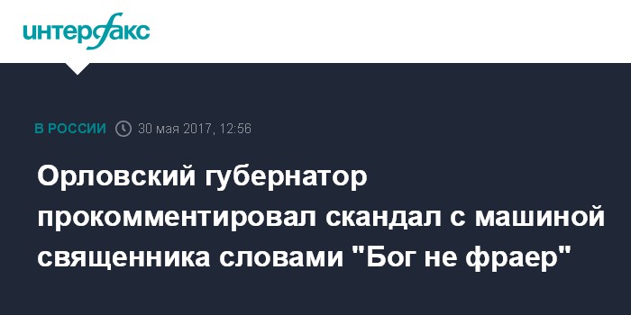 Орловский губернатор прокомментировал скандал с машиной священника словами "Бог не фраер"
