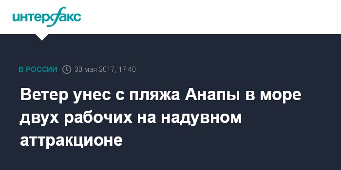 Москва. 30 мая. INTERFAX.RU - Спасатели выловили в открытом море под Анапой двух работников пляжа, которых унесло ветром на большой надувной горке, сообщили агентству "Интерфакс" в Единой дежурно-диспетчерской службе (ЕДДС) города-курорта во вторник.