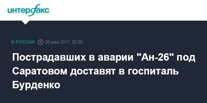 Москва. 30 мая. INTERFAX.RU - Военнослужащие, пострадавшие во время жесткой посадки самолета Ан-26 в Саратовской области, будут доставлены на лечение в Москву. Об этом сообщили "Интерфаксу" во вторник вечером в департаменте информации Минобороны РФ.