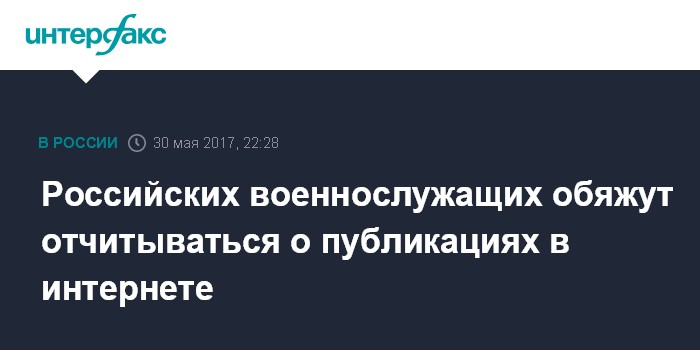Москва. 30 мая. INTERFAX.RU - Минобороны РФ подготовило законопроект, обязывающий российских военнослужащих и иностранцев-контрактников отчитываться о публикациях в интернете.