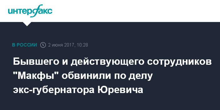 Москва. 2 июня. INTERFAX.RU - Следователи в рамках расследования дела о коррупции, фигурантом которого является экс-губернатор Челябинской области Михаил Юревич, предъявили обвинение в соучастии задержанным главе столичного филиала ОАО "Макфа" Андрею Чуркину и бывшему главному бухгалтеру компании Маргарите Бутаковой, сообщила официальный представитель Следственного комитета России (СКР) Светлана Петренко.
