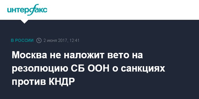 Москва не наложит вето на резолюцию СБ ООН о санкциях против КНДР