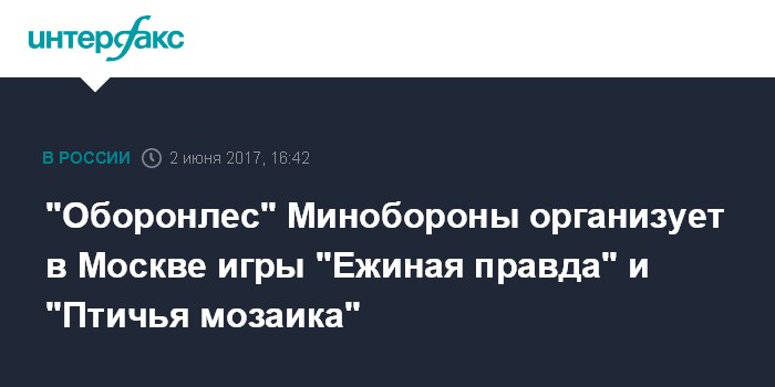 "Оборонлес" Минобороны организует в Москве игры "Ежиная правда" и "Птичья мозаика"