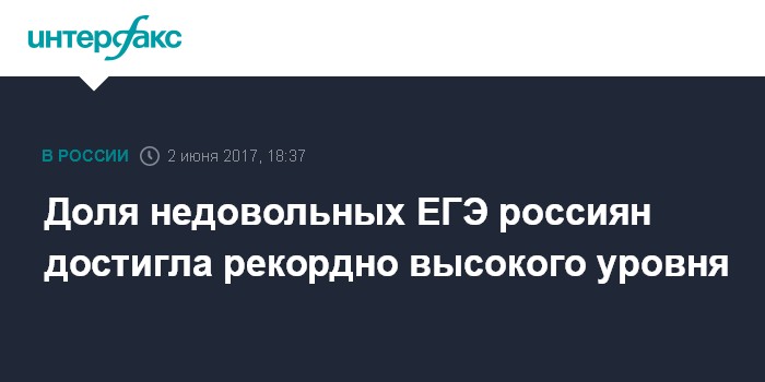 Москва. 2 июня. INTERFAX.RU - Две трети россиян (66%) не одобряют сдачу в школах единого государственного экзамена, при этом доля противников ЕГЭ достигла максимального за последние десять лет уровня, сообщили в фонде "Общественное мнение".