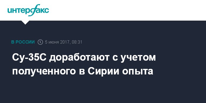 Москва. 5 июня. INTERFAX.RU - Истребители Су-35С будут доработаны в 2017 году с учетом опыта боевого применения в Сирии, заявил заместитель министра обороны России Юрий Борисов.