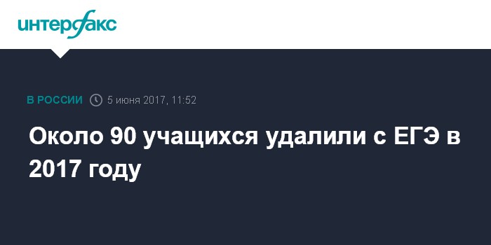 "10 удалений было на географии и информатике, на математике, базовой и профильной, еще порядка 80. То есть где-то 90 удалений в этом году", - сказал Кравцов в понедельник на пресс-конференции в ситуационно-информационном центре Рособрнадзора, отвечая на вопрос "Интерфакса".