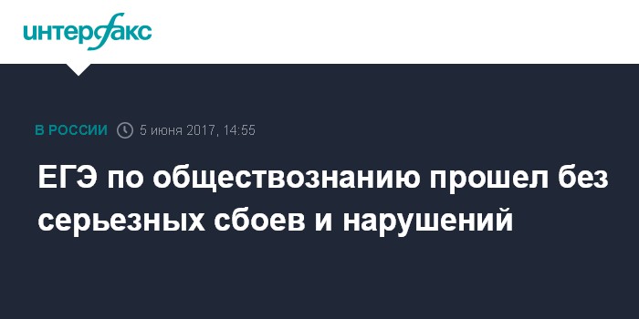 Москва. 5 июня. INTERFAX.RU - Самый массовый Единый государственный экзамен (ЕГЭ) по выбору - обществознание прошел в штатном режиме, сообщили "Интерфаксу" в пресс-службе Рособрнадзора.