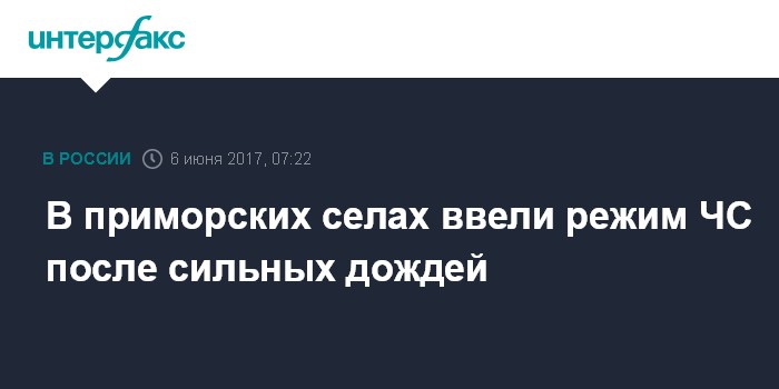 Москва. 6 июня. INTERFAX.RU - Власти ввели режим чрезвычайной ситуации (ЧС) местного уровня в семи селах Чугуевского района Приморского края после сильных дождей, вызвавших подъем воды в реках, сообщила администрация региона.