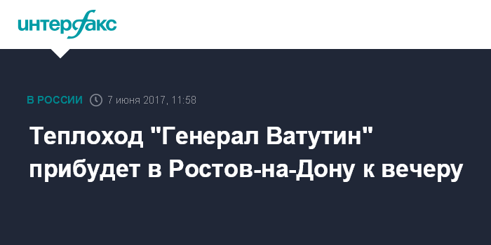 Теплоход "Генерал Ватутин" прибудет в Ростов-на-Дону к вечеру