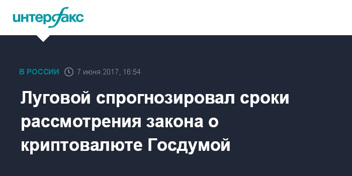 Москва. 7 июня. INTERFAX.RU - Госдума может рассмотреть законопроект о регулировании работы криптовалют в России в сентябре этого года, заявила член комитета Госдумы по безопасности и противодействию коррупции, один из активных разработчиков поправок в законодательство в этой сфере Андрей Луговой.