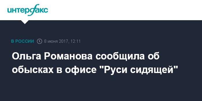 Москва. 8 июня. INTERFAX.RU - В правозащитной организации "Русь сидящая" проходит обыск, сообщила директор организации Ольга Романова в своем фейсбуке.