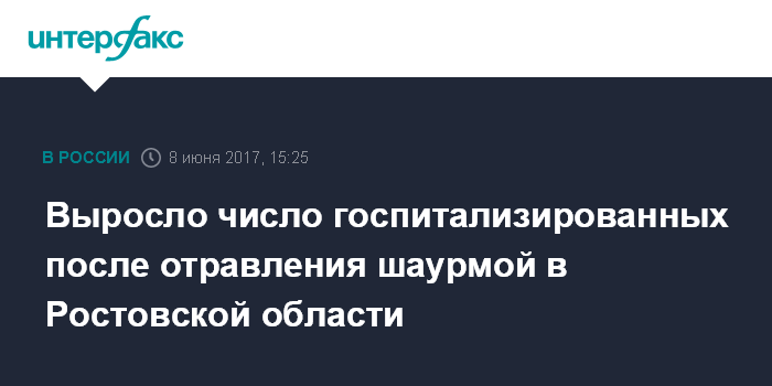 Москва. 8 июня. INTERFAX.RU - 15 человек обратились за последние сутки в медучреждения с признаками отравления после употребления в пищу шаурмы в Новочеркасске, сообщили "Интерфаксу" в пресс-службе минздрава региона.