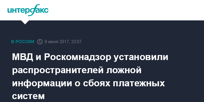 Москва. 9 июня. INTERFAX.RU - МВД России начало проверку по обращению Роскомнадзора в связи с распространенной в интернете ложной информацией о якобы сбоях в работе платежных систем ряда крупных банков в результате DNS-атаки.