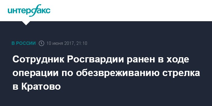 Москва. 10 июня. INTERFAX.RU - Боец Росгвардии получил легкое ранение в результате стрельбы в подмосковном посёлке Кратово, сообщил "Интерфаксу" осведомлённый источник.