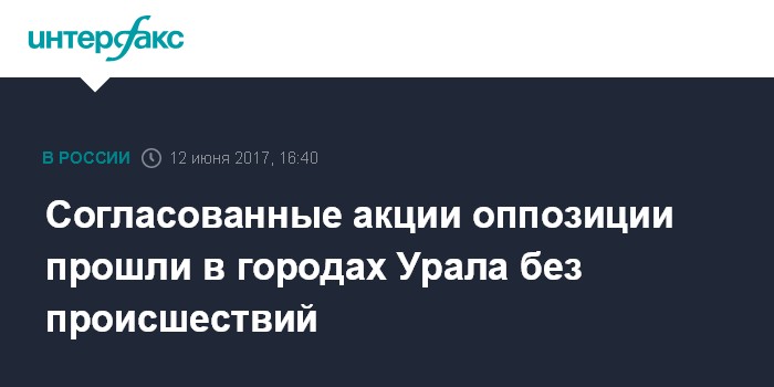 Москва. 12 июня. INTERFAX.RU - Митинги оппозиции, согласованные с органами власти, прошли в понедельник в городах Уральского федерального округа без происшествий.