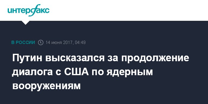 Путин высказался за продолжение диалога с США по ядерным вооружениям