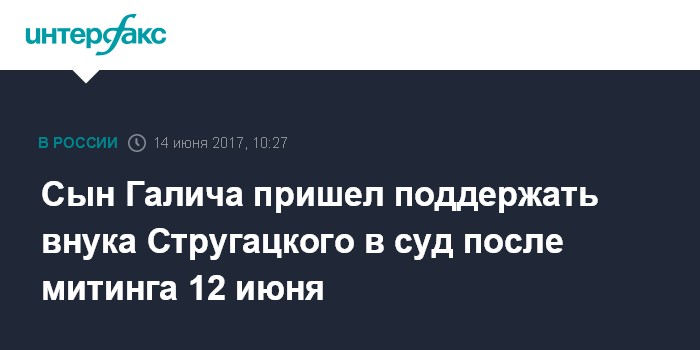Москва. 14 июня. INTERFAX.RU - Религиозный деятель Григорий Михнов-Вайтенко, сын барда Александра Галича, прибыл в суд поддержать внука писателя-фантаста Бориса Стругацкого, задержанного на несогласной акции протеста в Петербурге 12 июня.