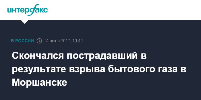 Москва. 14 июня. INTERFAX.RU - Пострадавший от взрыва бытового газа в одной из квартир девятиэтажного дома 30-летний житель Моршанска скончался утром в среду в больнице от термических ожогов, сообщает пресс-служба СУ СКР по Тамбовской области.