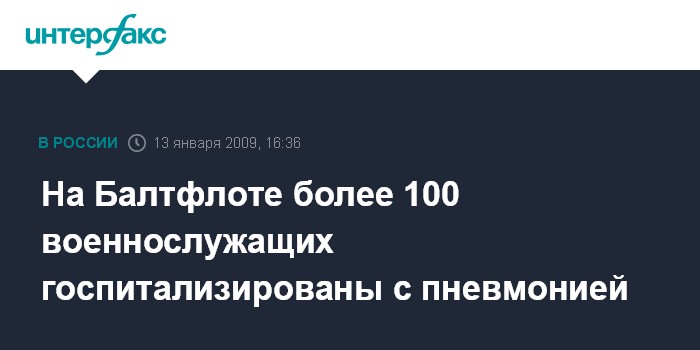 Москва. 13 января. INTERFAX.RU - 111 военнослужащих срочной службы Балтийского флота находятся на лечении с диагнозом "пневмония", сообщил "Интерфаксу" во вторник помощник главкома ВМФ капитан 1 ранга Игорь Дыгало.
