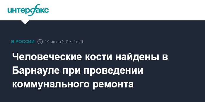 Москва. 14 июня. INTERFAX.RU - Следователи проверяют обстоятельства обнаружения человеческих костей в историческом центре Барнаула, сообщает в среду пресс-центр регионального следственного управления СК РФ.