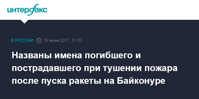 Москва. 15 июня. INTERFAX.RU - Реутовское "НПО машиностроения" окажет всю необходимую помощь семьям двух сотрудников, один из который погиб, а другой пострадал в результате степного пожара, возникшего после пуска с Байконура ракеты-носителя "Союз", сообщил в четверг "ИнтерфаксуН" пресс-секретарь предприятия Антон Дегтярев.
