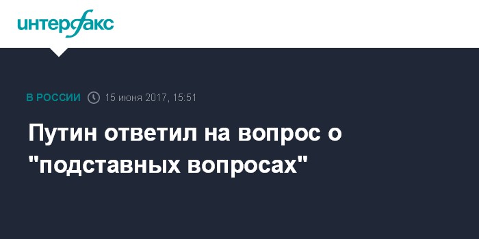 Москва. 15 июня. INTERFAX.RU - В ходе "прямой линии" Владимира Путина один из зрителей поинтересовался у президента, неужели он верит в те "подставные вопросы", которые ему задают. В ответ президент начал зачитывать вопросы, появляющиеся на экране в ходе прямой линии, отметив, что это абсолютно нормальные, насущные вопросы, и он не считает их подставными.