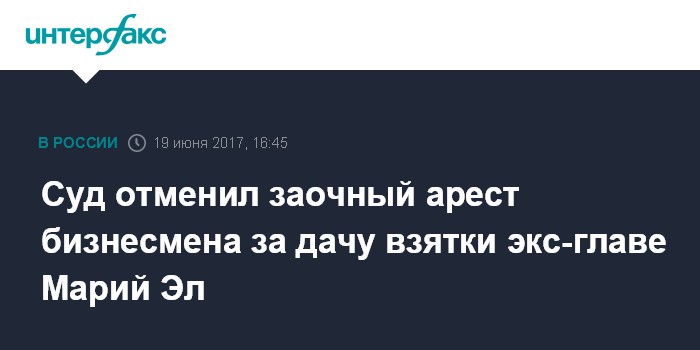 Суд отменил заочный арест бизнесмена за дачу взятки экс-главе Марий Эл