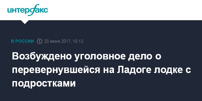 Москва. 20 июня. INTERFAX.RU - Уголовное дело о причинении смерти по неосторожности возбуждено в связи с инцидентом на Ладожском озере, где пятеро подростков перевернулись вместе с лодкой, сообщили в пресс-службе Следственного комитета России.