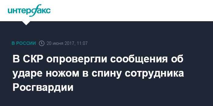 В СКР опровергли сообщения об ударе ножом в спину сотрудника Росгвардии