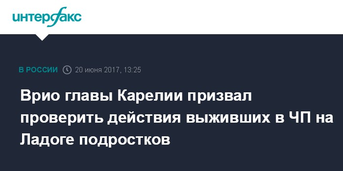 Москва. 20 июня. INTERFAX.RU - Врио главы Карелии Артур Парфенчиков заявил, что ЧП на Ладоге стало результатом легкомысленности подростков, их действия должны оценить следственные органы.