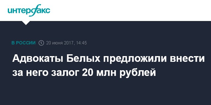 Адвокаты Белых предложили внести за него залог 20 млн рублей