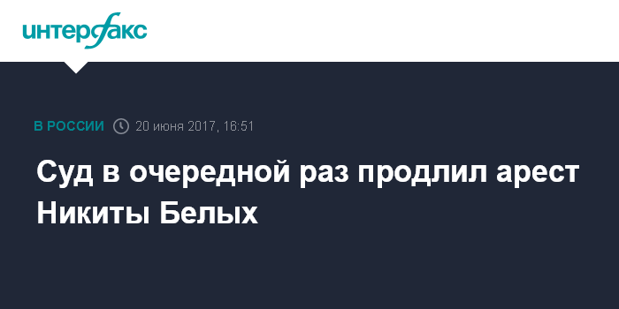 "Суд постановил: ходатайство следствия удовлетворить, продлить обвиняемому Белых срок содержания под стражей на три месяца, то есть до 24 сентября 2017 года", - говорится в решении суда, оглашённом во вторник.