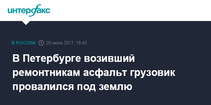 Москва. 20 июня. INTERFAX.RU - На севере Петербурга грузовой автомобиль, поставивший рабочим асфальт, сам частично провалился под землю на месте ремонта дороги, сообщили "Интерфаксу" в пресс-службе комитета по благоустройству во вторник.