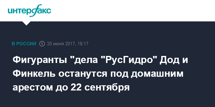 Фигуранты "дела "РусГидро" Дод и Финкель останутся под домашним арестом до 22 сентября