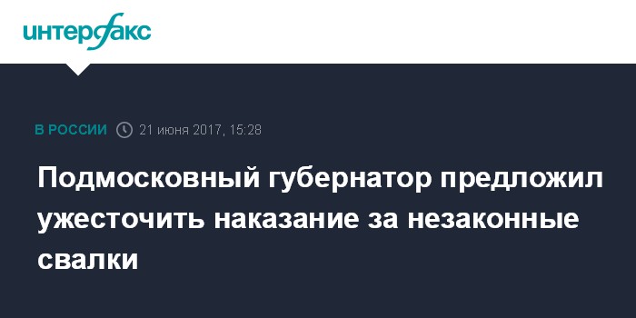 Москва. 21 июня. INTERFAX.RU - Губернатор Московской области Андрей Воробьев назвал ситуацию с нелегальными свалками в Подмосковье безобразной и предложил подготовить законодательную инициативу, предполагающую ответственность за навалы мусора.