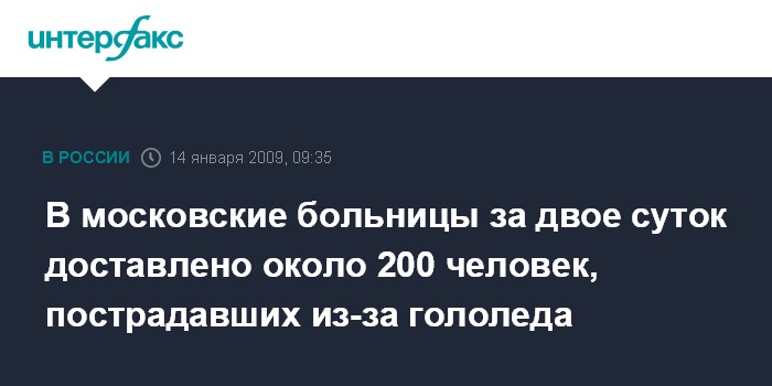 В московские больницы за двое суток доставлено около 200 человек, пострадавших из-за гололеда