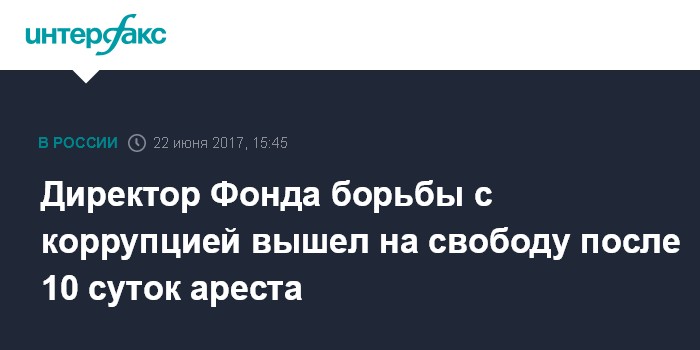 Москва. 22 июня. INTERFAX.RU - Директор Фонда борьбы с коррупцией Алексея Навального Роман Рубанов, отбыв десять суток административного ареста за неповиновение 12 июня московским полицейским на согласованной с властями протестной акции на проспекте Сахарова, вышел на свободу. Об этом "Интерфаксу" сообщили в штабе Навального.