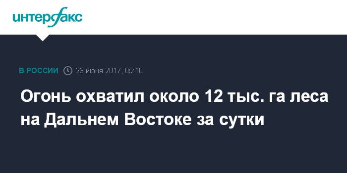 Москва. 23 июня. INTERFAX.RU - Лесные службы в минувшие сутки боролись с 48 лесными пожарами, горело 12,1 тыс. га тайги, сообщает департамент лесного хозяйства по Дальневосточному федеральному округу. Самые сильные очаги были зарегистрированы в Якутии, на территорию региона пришлось более 10 тыс. га уничтоженной огнем площади. Леса также горели в Амурской области, в Хабаровском крае, в Магаданской области и на Чукотке.