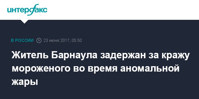 Москва. 23 июня. INTERFAX.RU - Уголовное дело возбуждено в Барнауле (Алтайский край), где стоит тридцатиградусная жара, после кражи мороженого местным жителем, сообщает в пятницу пресс-центр главного управления МВД РФ по региону.